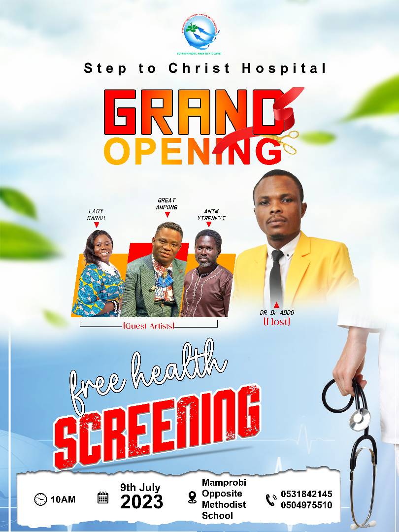 And the place is Step to Christ Herbal hospital and meet with @ Dr DR Addo.